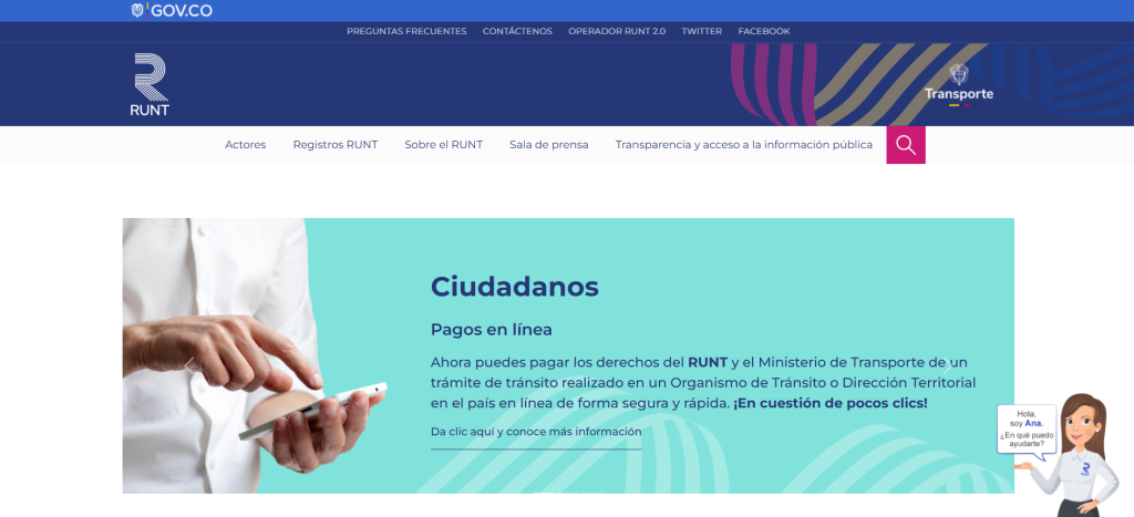 - Accede al sitio web oficial del Registro Único Nacional de Tránsito (RUNT): Ingresa a www.runt.gov.co.